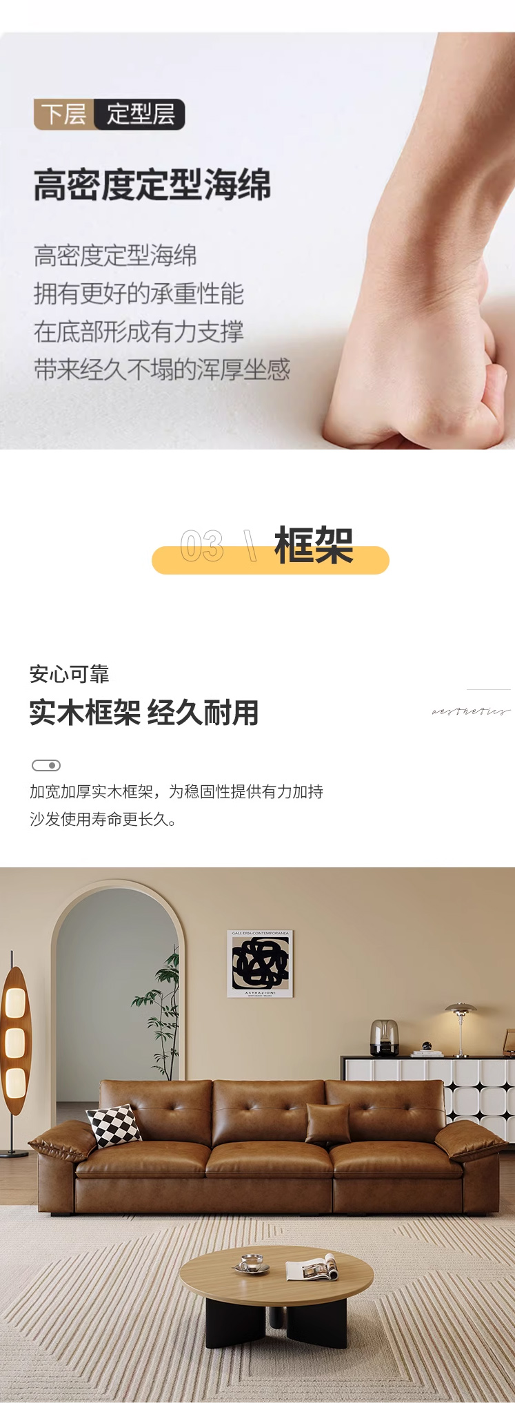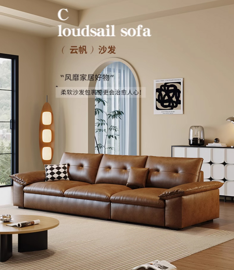 中古·尚 网红 中古风 接触面头层牛皮+框架落叶松木+多层实木夹板+实木脚 2.85米四人位 分体 沙发¥6638