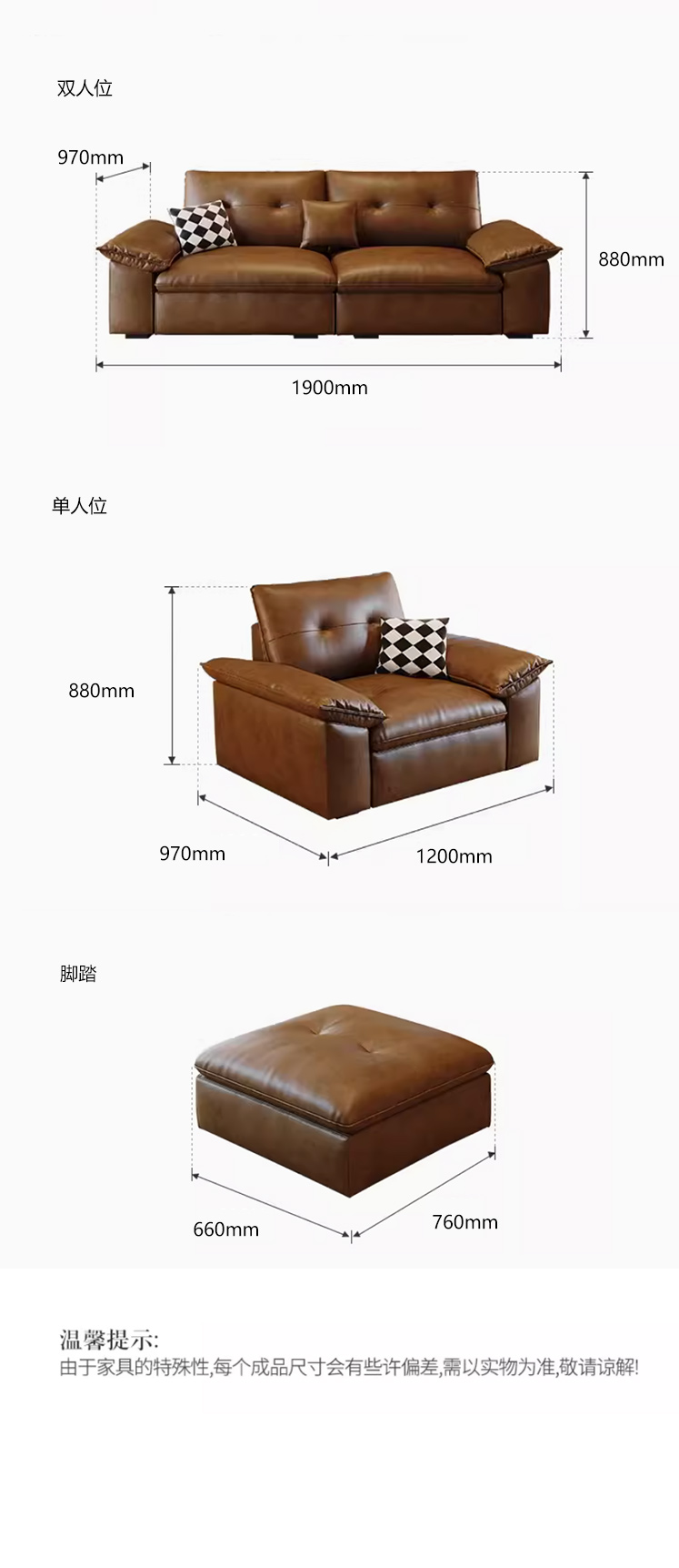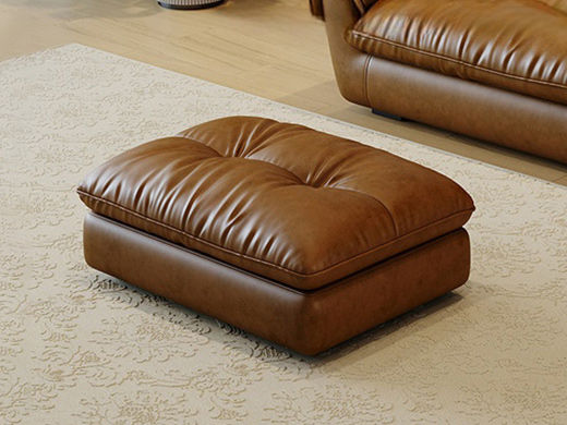 维利品尚 中古风 接触面复古油蜡真皮+框架:俄罗斯松木+实木脚 脚踏 沙发