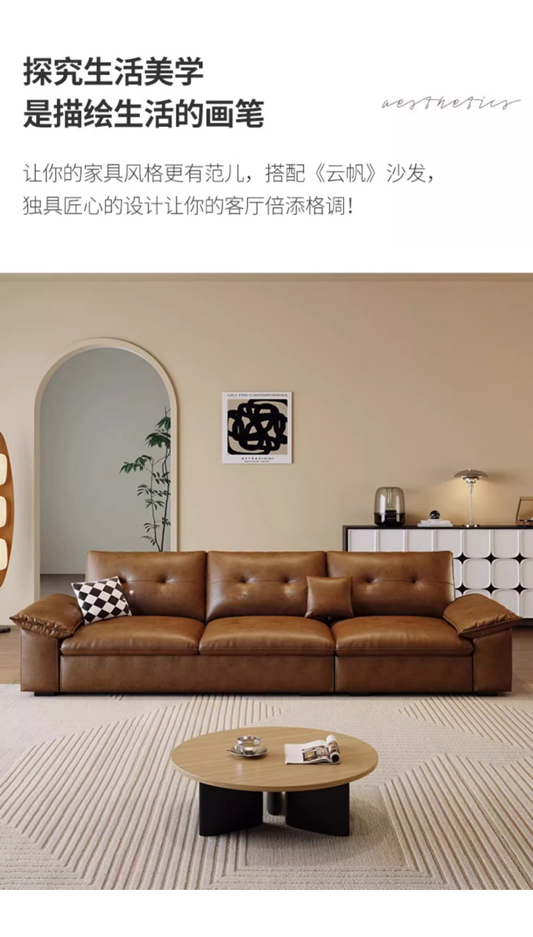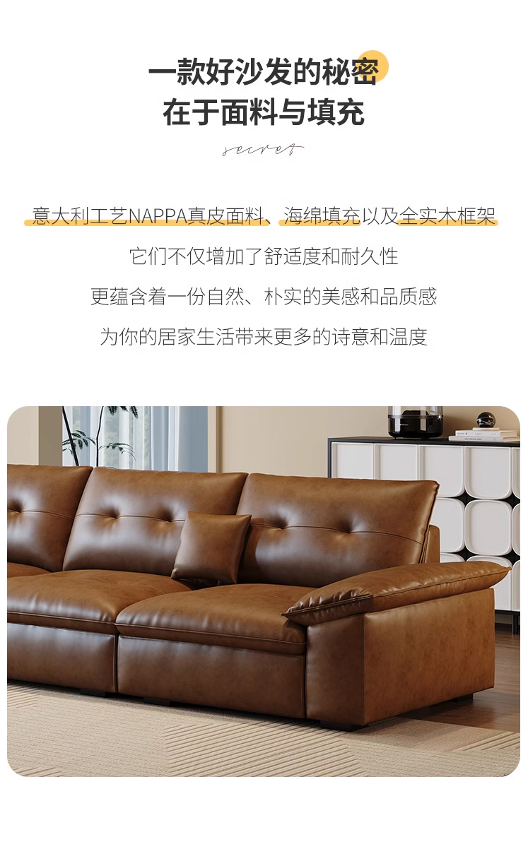 中古·尚 网红 中古风 接触面头层牛皮+框架落叶松木+多层实木夹板+实木脚 2.85米四人位 分体 沙发¥9157