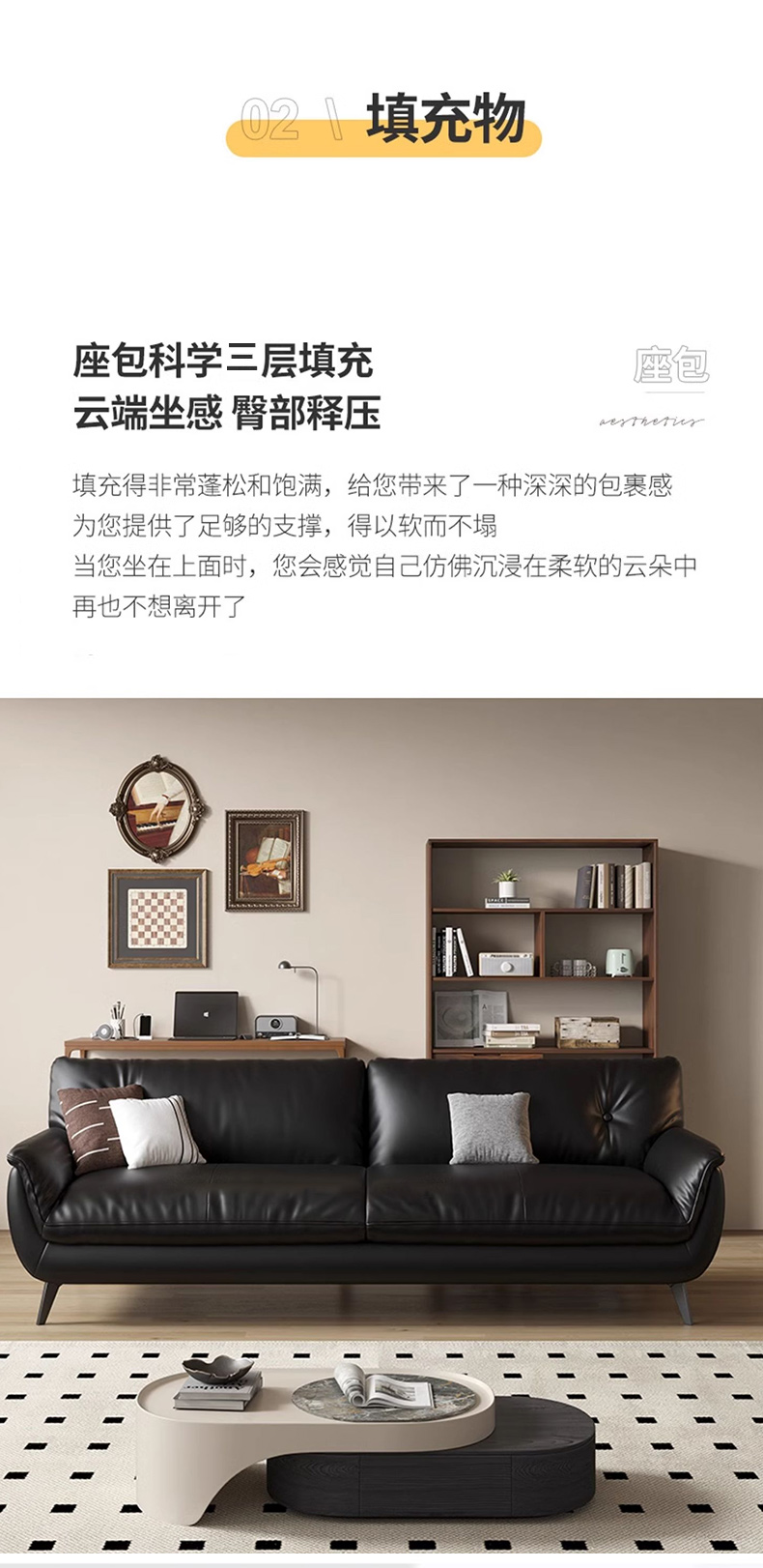 维利品尚 现代简约 接触面头层真皮+落叶松框架+碳素钢脚 三人位 2.2米沙发¥7670