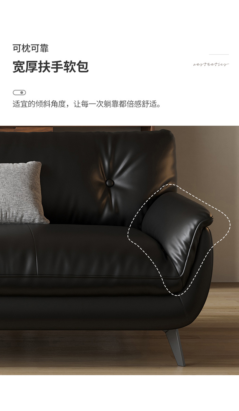 维利品尚 现代简约 接触面头层真皮+落叶松框架+实木脚 三人位 2.2米沙发¥6452