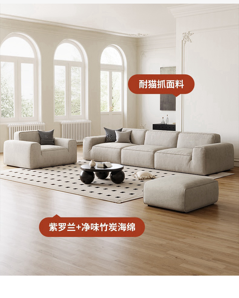 非凡工艺 现代简约 云朵 网红 绒感猫爪布+框架落叶松木+实木脚 2.2米 三人位一体 沙发| 商品详情 | 规格参数 | 评价(0) | 购买咨询() | 产品实拍图 | 服务标准 |