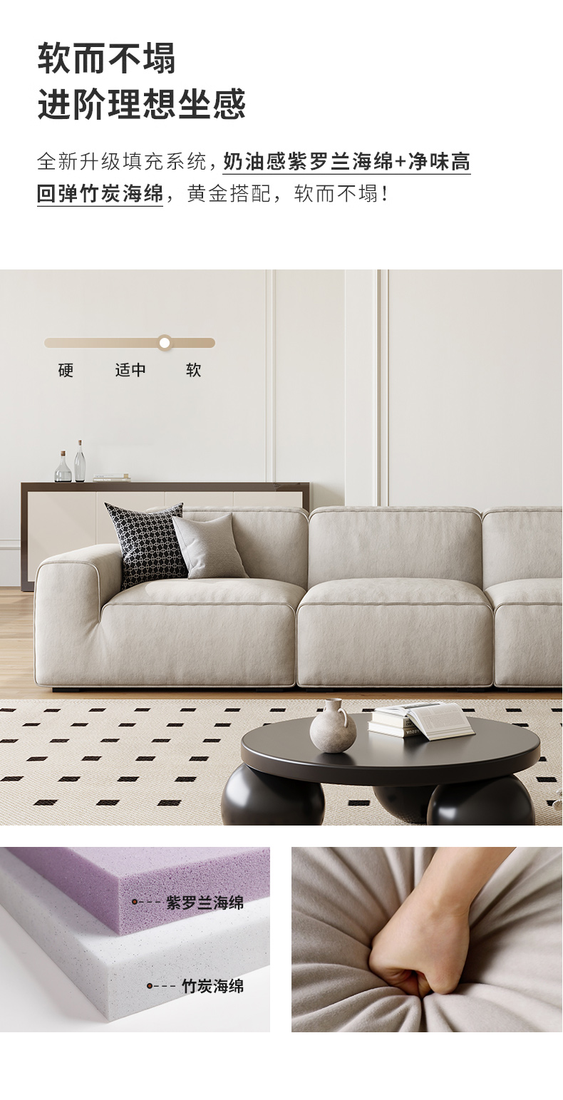 非凡工艺 现代简约 云朵 网红 绒感猫爪布+框架落叶松木+实木脚 2.2米 三人位一体 沙发| 商品详情 | 规格参数 | 评价(0) | 购买咨询() | 产品实拍图 | 服务标准 |