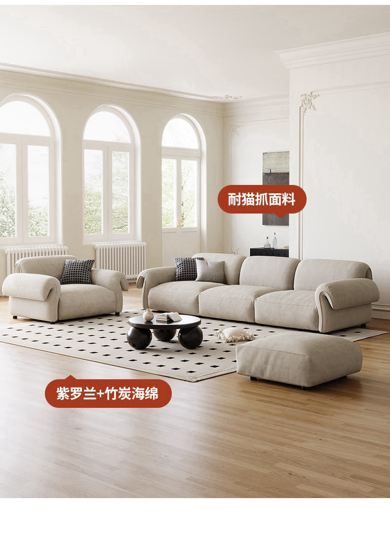 维利品尚 现代简约 猫抓布+框架:俄罗斯松木+实木脚 三人位 2.2米沙发¥5389