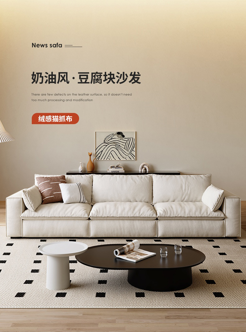 维利品尚 现代简约 猫抓布+框架:俄罗斯松木+实木脚 三人位 2.2米沙发¥5389
