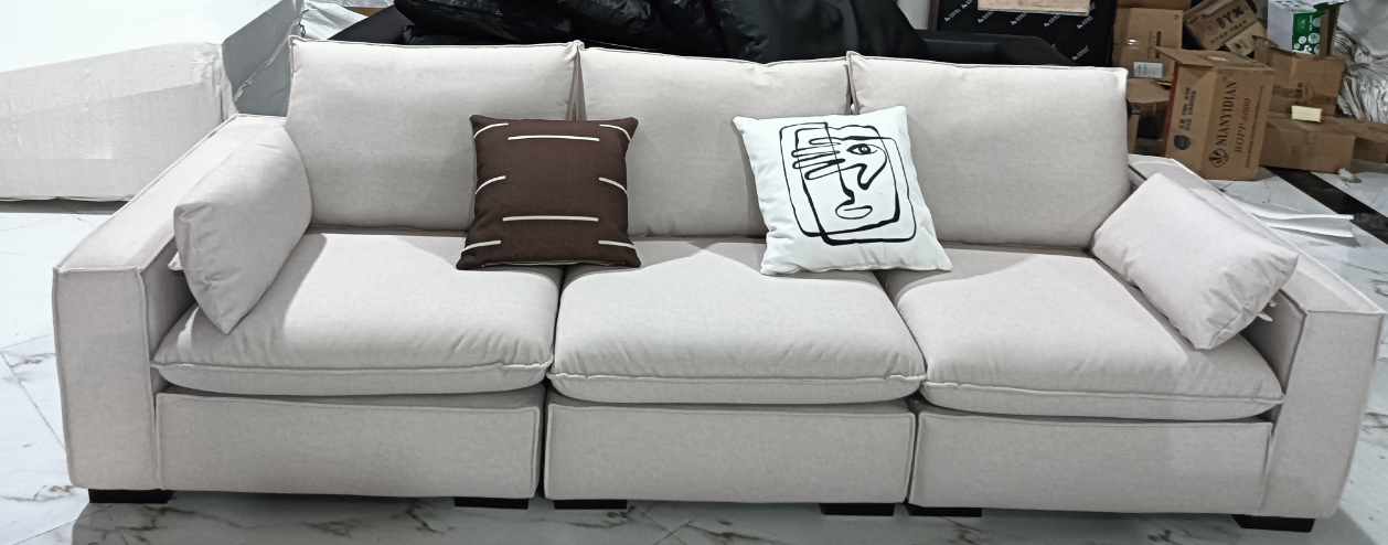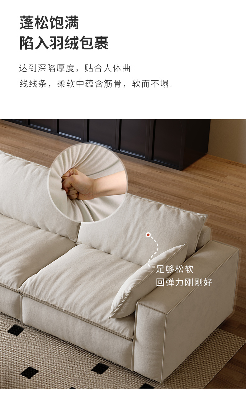 A系优选 现代简约 俄罗斯落叶松+蛇形弹簧+弹力繃带框架 高密度回弹海绵+羽绒座包+羽绒靠包 猫抓布面料 5公分矮脚 图片色 直排四人位 3米沙发¥4660