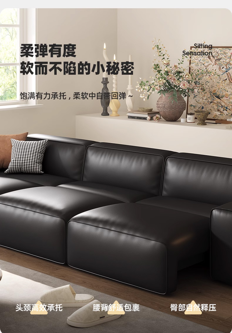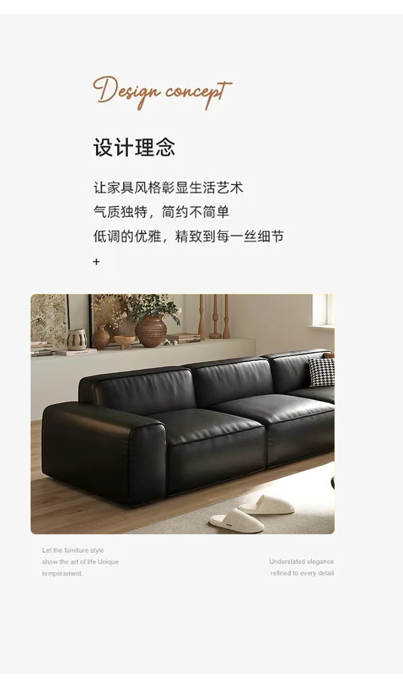 维利品尚 现代简约 接触面头层真皮+落叶松框架+实木脚 三人位 2.2米沙发