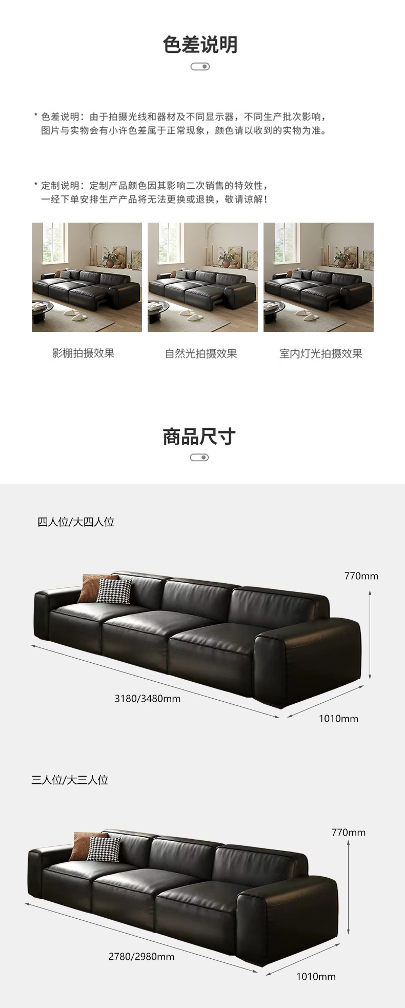 维利品尚 现代简约 接触面头层真皮+落叶松木框架+实木脚 三人位 2.2米沙发¥8807