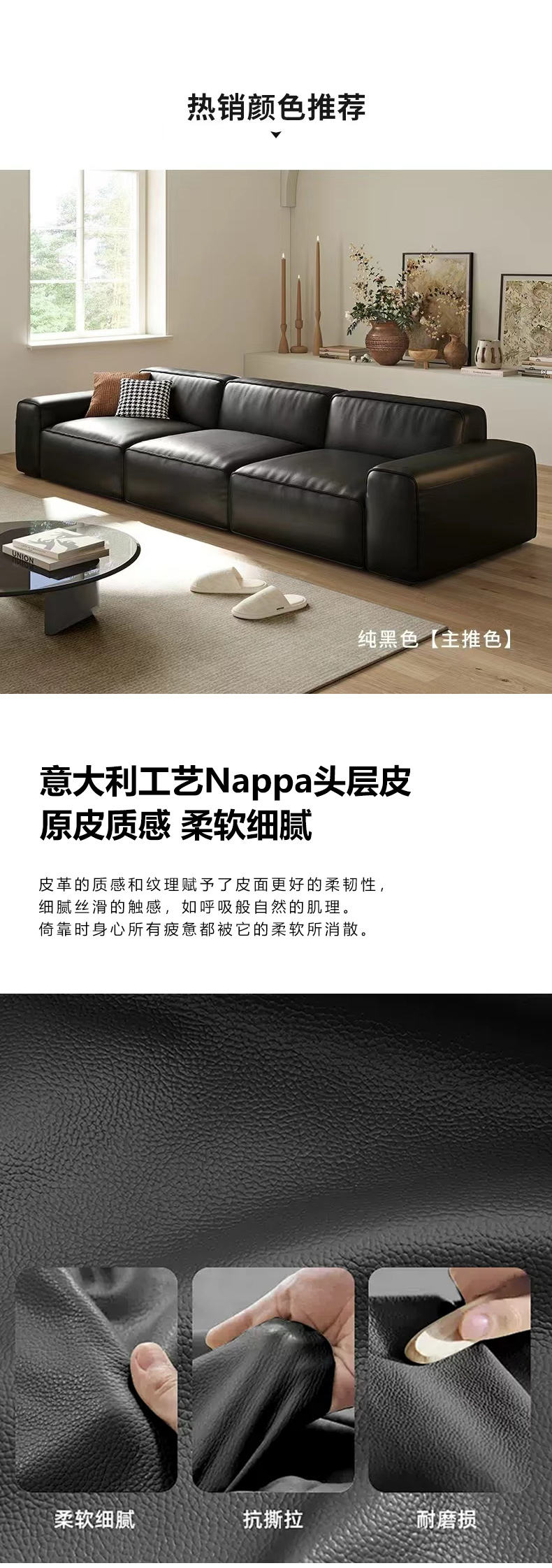 维利品尚 现代简约 接触面纳帕真皮+进口落叶松木+实木脚 三人位 2.25米沙发¥6496