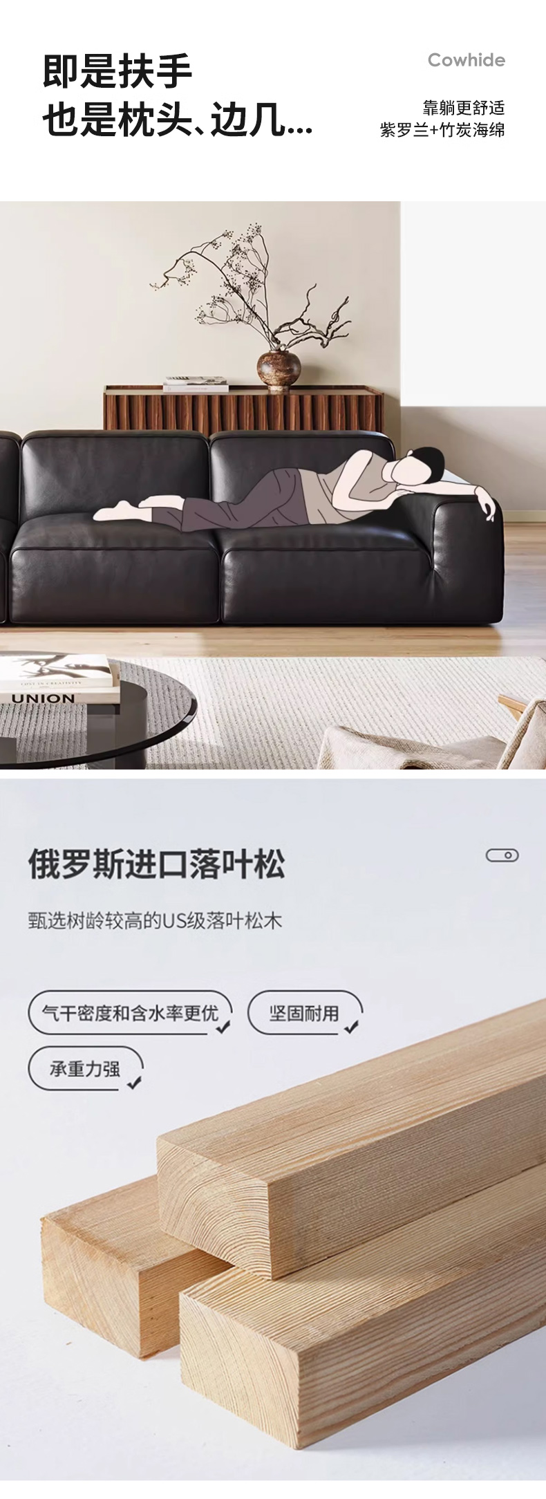 维利品尚 现代简约 接触面头层真皮+落叶松木框架+实木脚 三人位 2.2米沙发¥6531