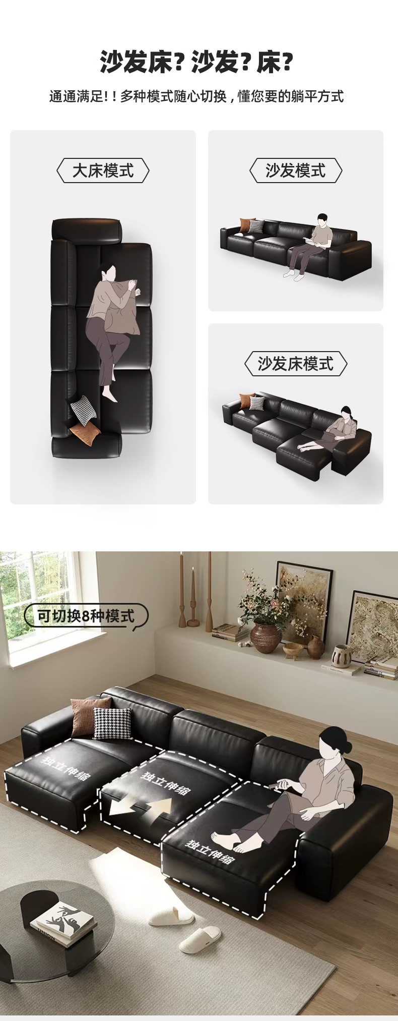 维利品尚 现代简约 接触面头层真皮+落叶松木框架 三人位 功能2.78米沙发