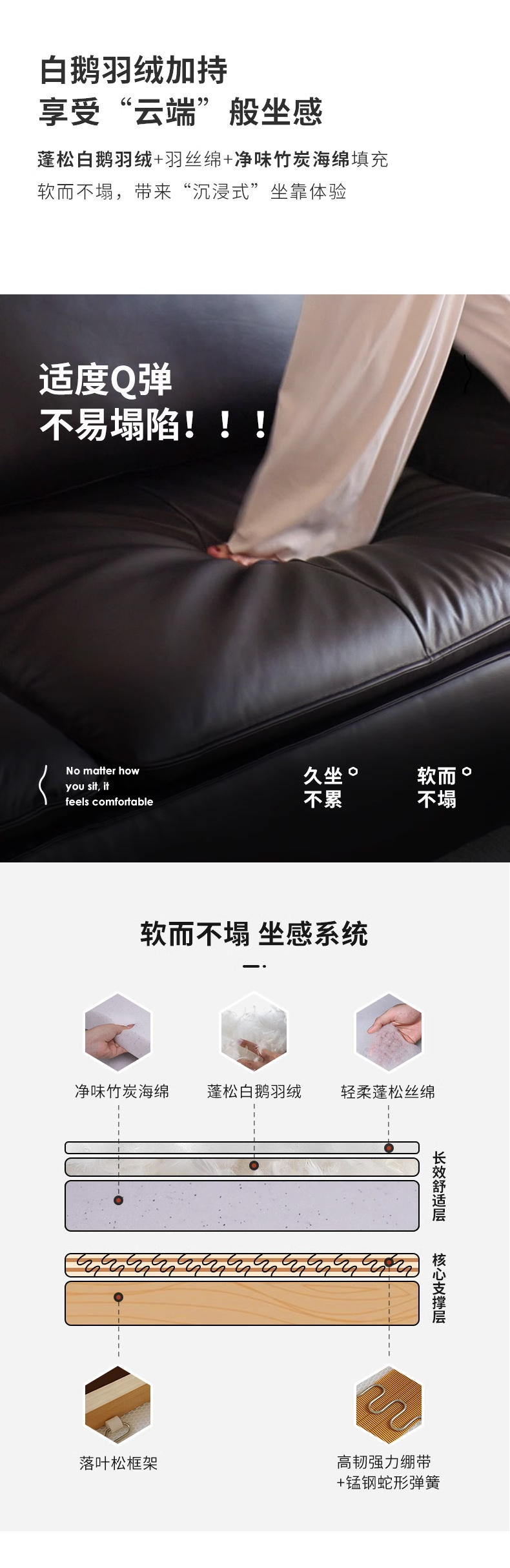 维利品尚 现代简约 接触面头层真皮+俄罗斯松木+实木脚 3+左贵妃 2.82米沙发