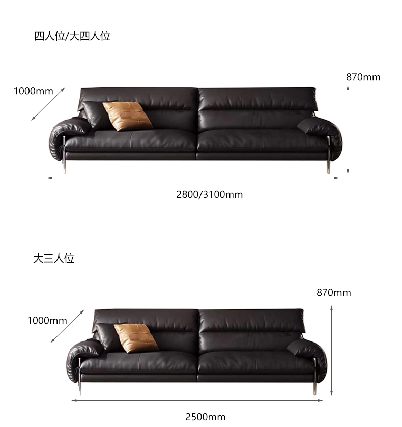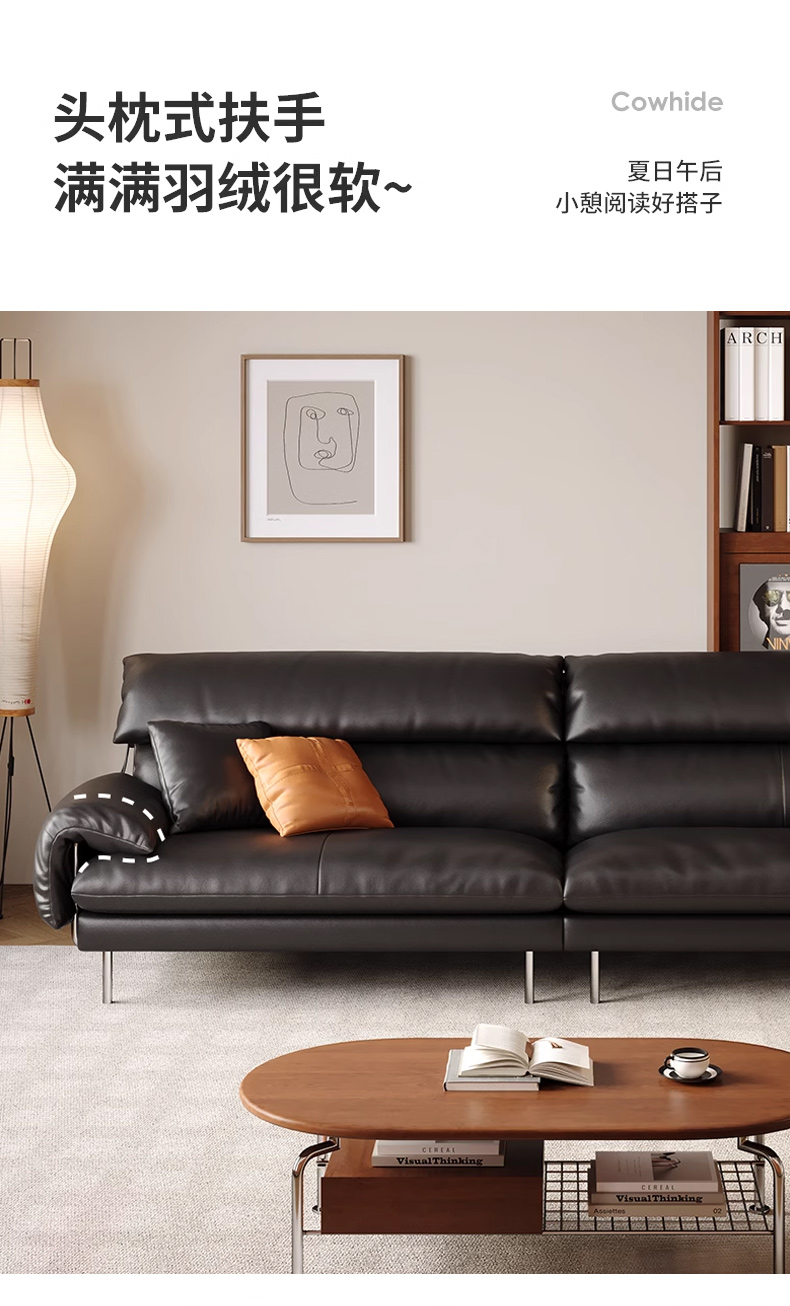 维利品尚 现代简约 接触面头层真皮+落叶松框架+碳素钢脚 三人位 2.2米沙发¥6801