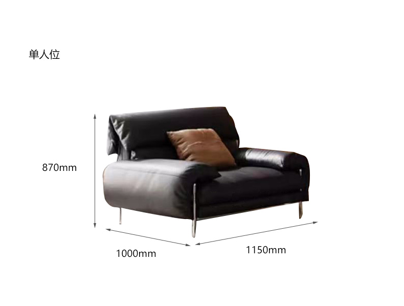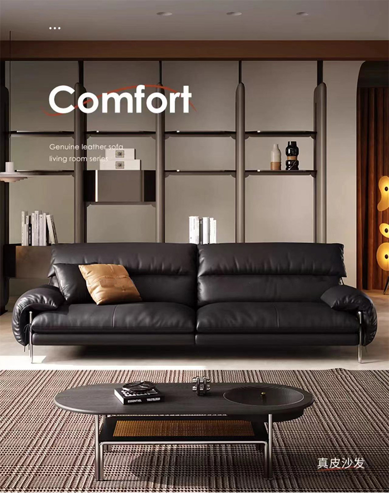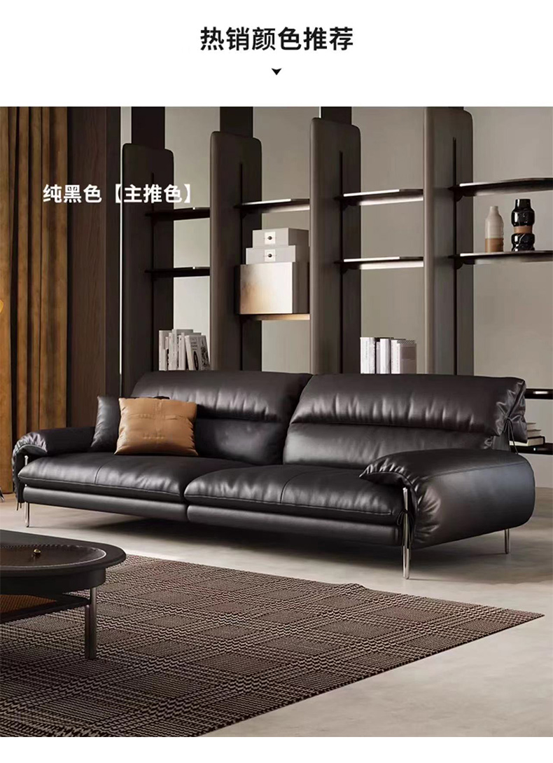 维利品尚 现代简约 接触面头层真皮+落叶松木框架+不锈钢脚 五人位 3.4米沙发