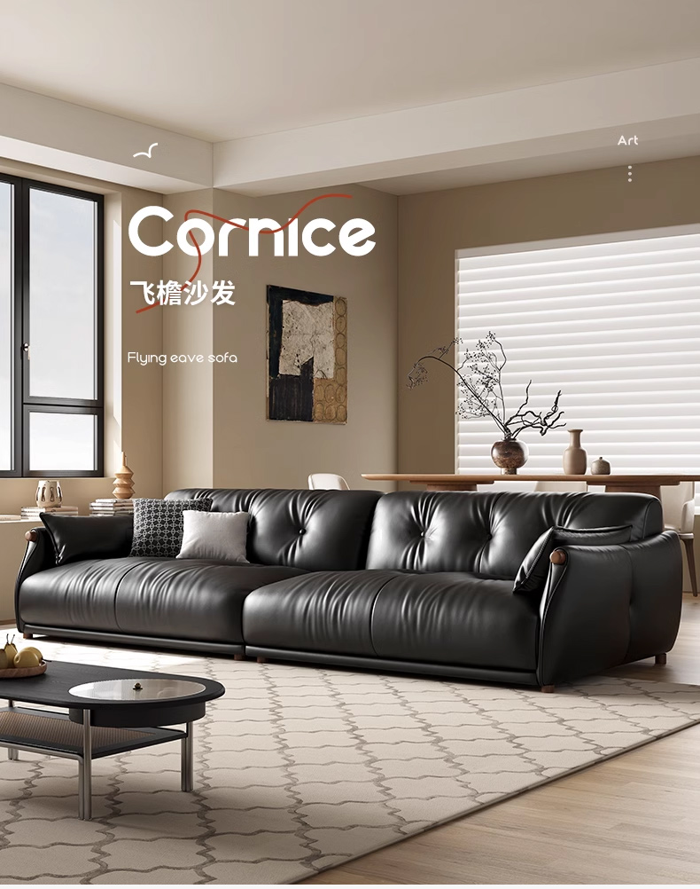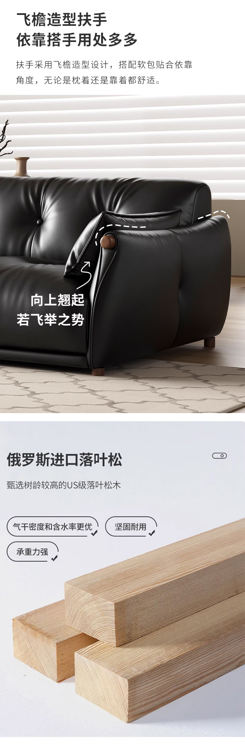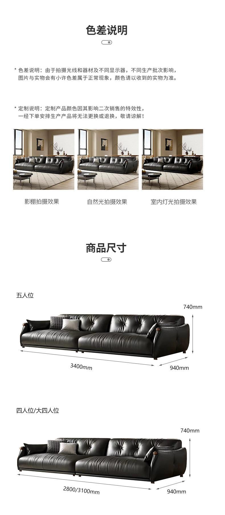 维利品尚 现代简约 接触面头层真皮+落叶松木框架+实木脚 五人位 3.4米沙发