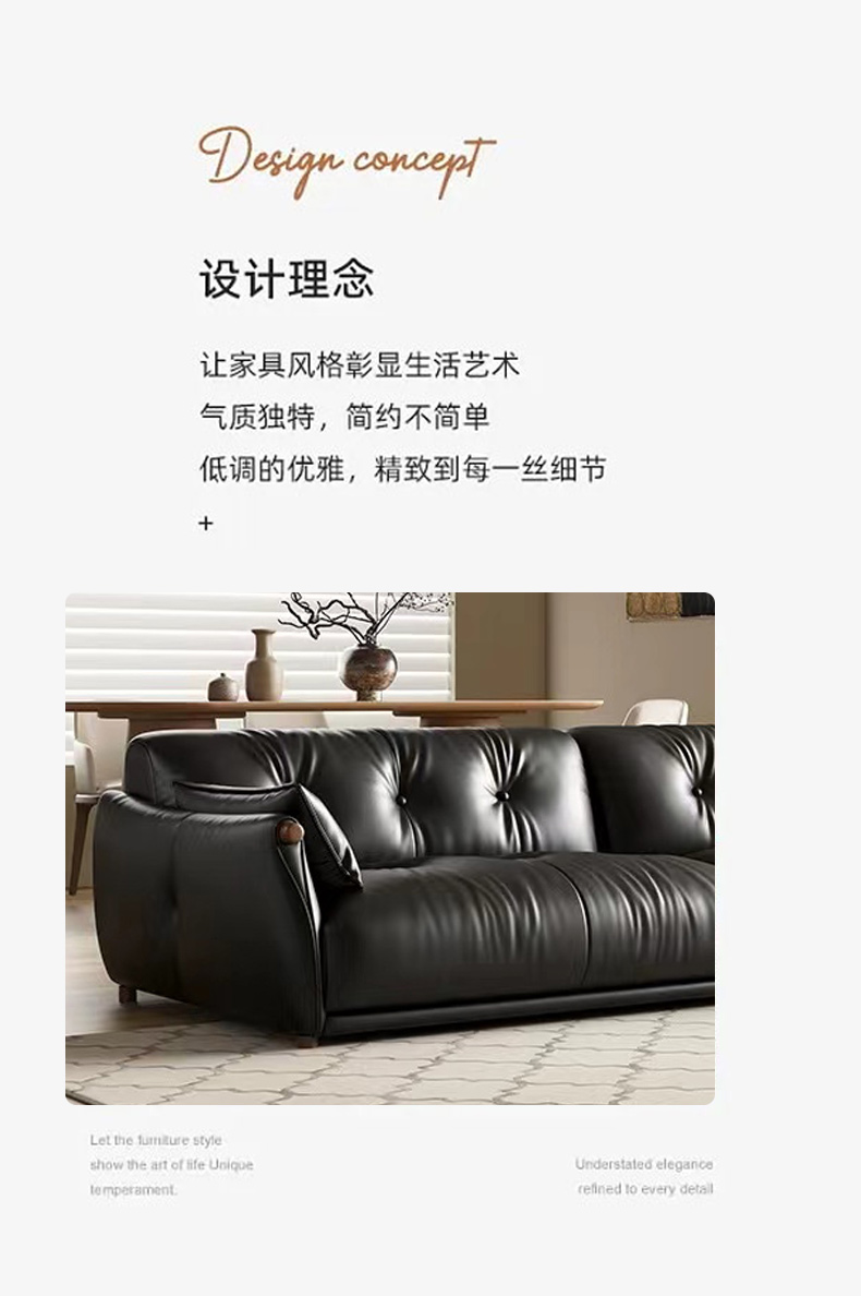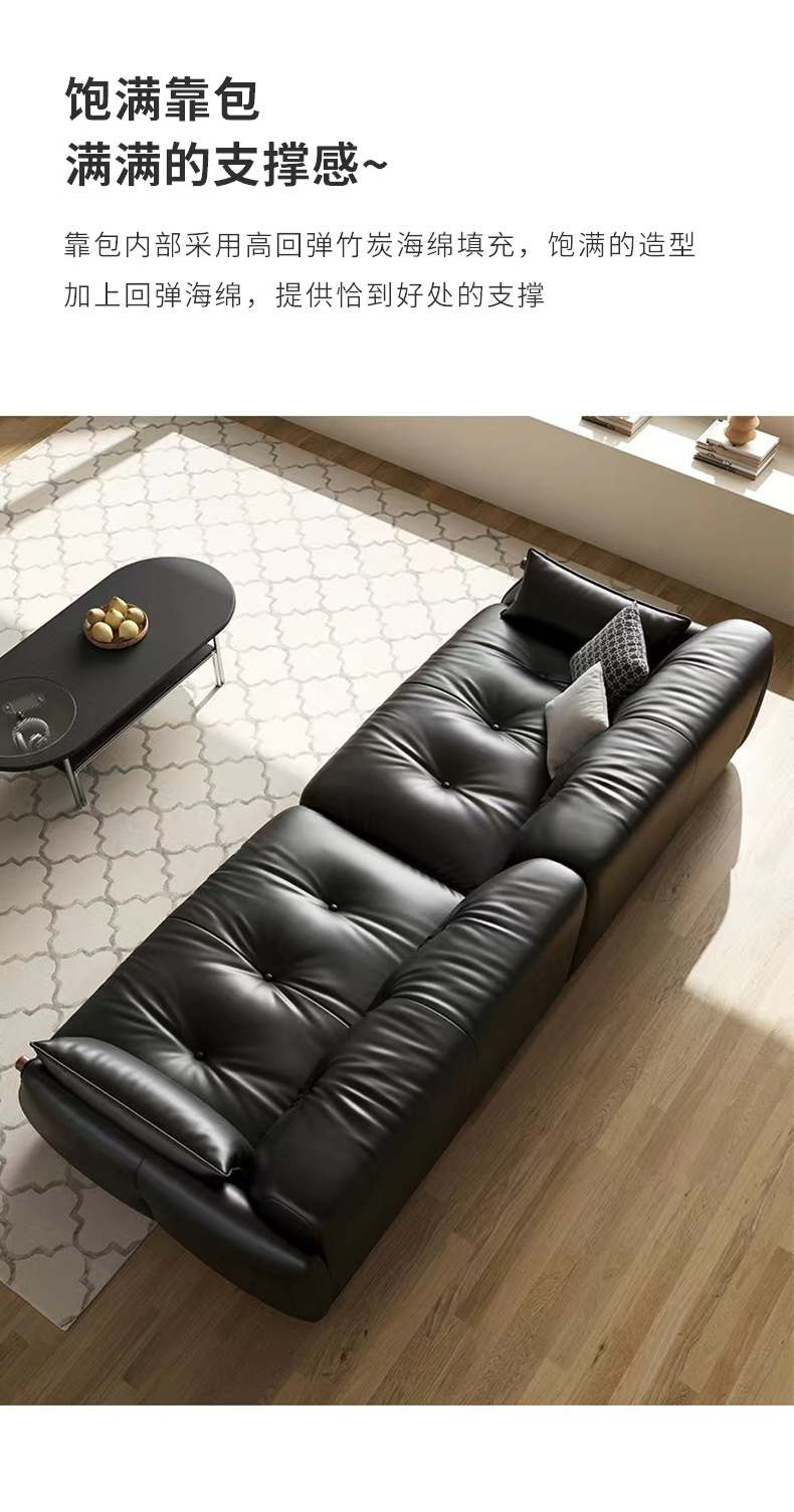 维利品尚 现代简约 接触面头层真皮+靠包:羽绒+羽丝棉+座包:水洗乳胶+高回弹竹炭海绵+落叶松木+高韧强力绷带+锰钢蛇形弹簧+五金脚 3.5米沙发¥9314