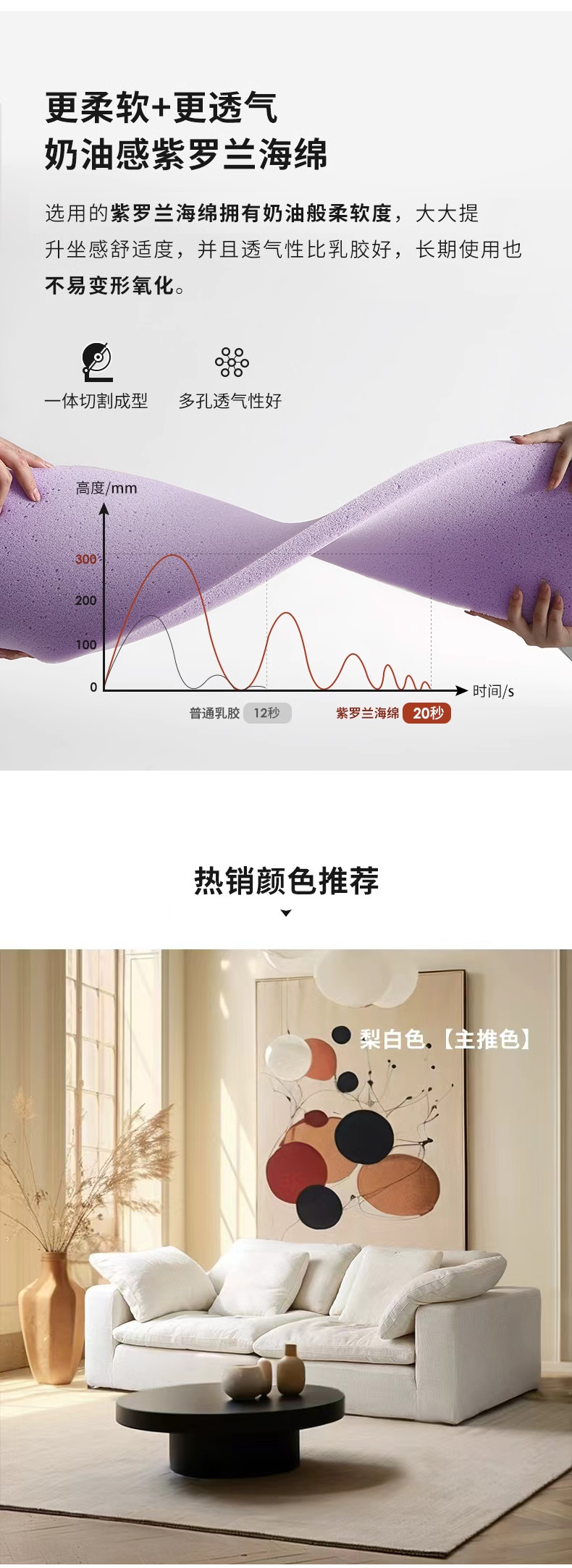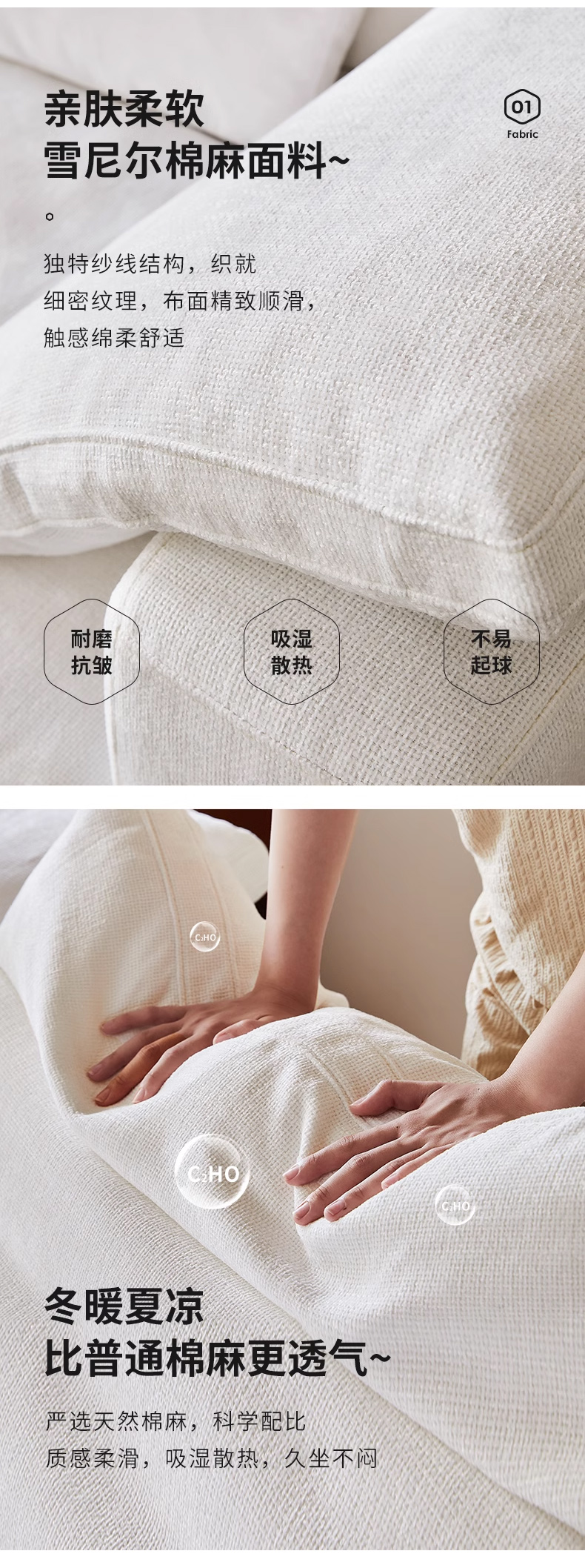 维利品尚 现代简约 比利时进口雪尼尔绒+靠包:白鹅羽绒+羽丝棉+扶手:白鹅羽绒+座包:轻柔丝棉+零压记忆棉+高回弹竹炭海绵+框架:松木内架+10cm绷带+3.8mm电镀锰钢弹簧+加固精钢定位线+封防潮底布 4米沙发