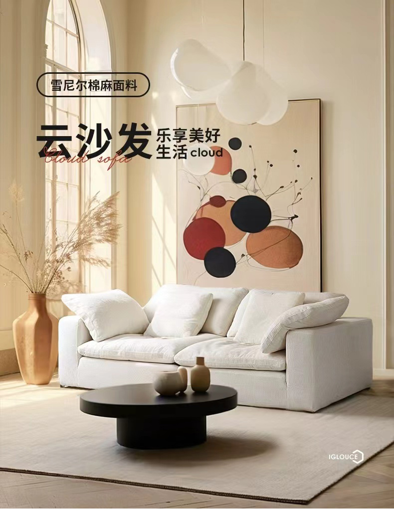 维利品尚 现代简约 猫抓布+实木内架+实木脚 三人位 2.8米沙发¥7398