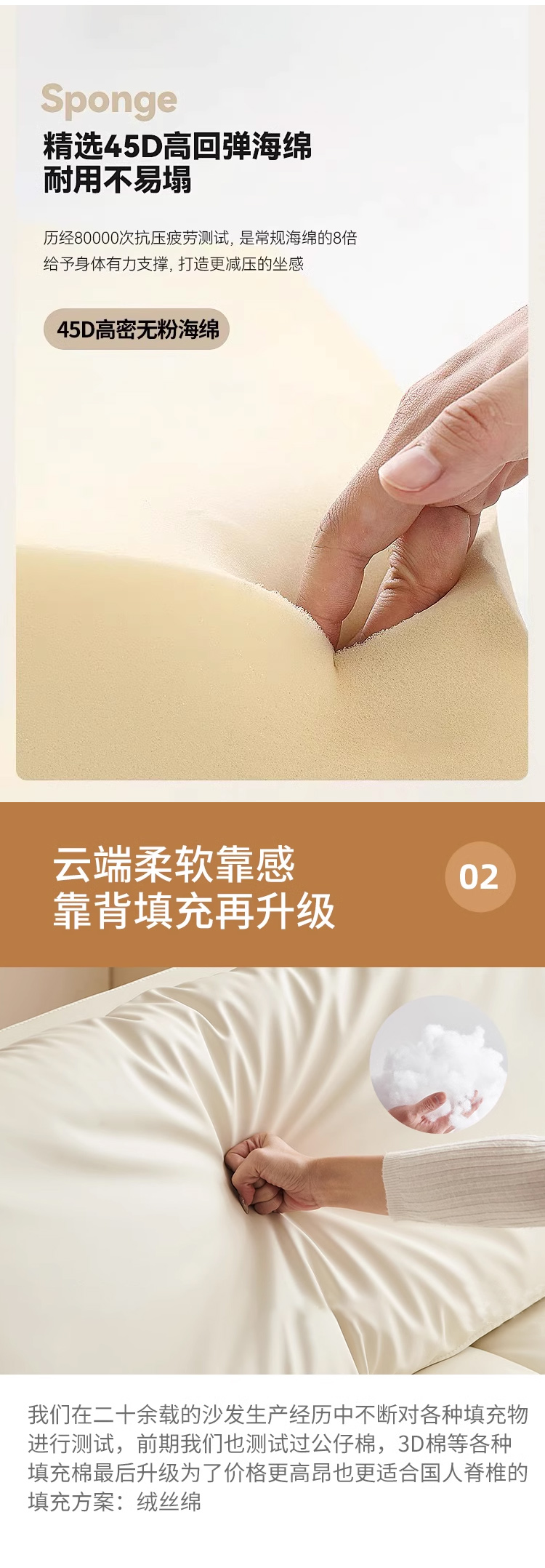 维利品尚 现代简约 猫抓布+靠背:羽绒+羽丝棉+扶手:竹炭海绵+框架:落叶松木+坐包:紫罗兰海绵+竹炭海绵+脚:实木 3.6米沙发¥7312