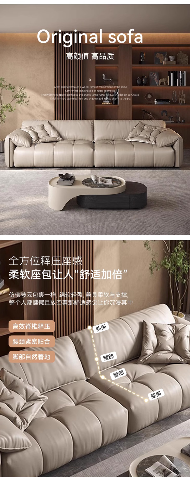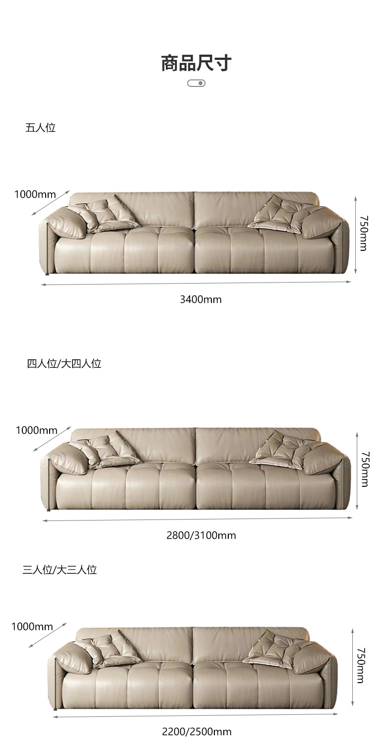 维利品尚 现代简约 接触面头层真皮+落叶松框架+实木脚 三人位 2.2米沙发