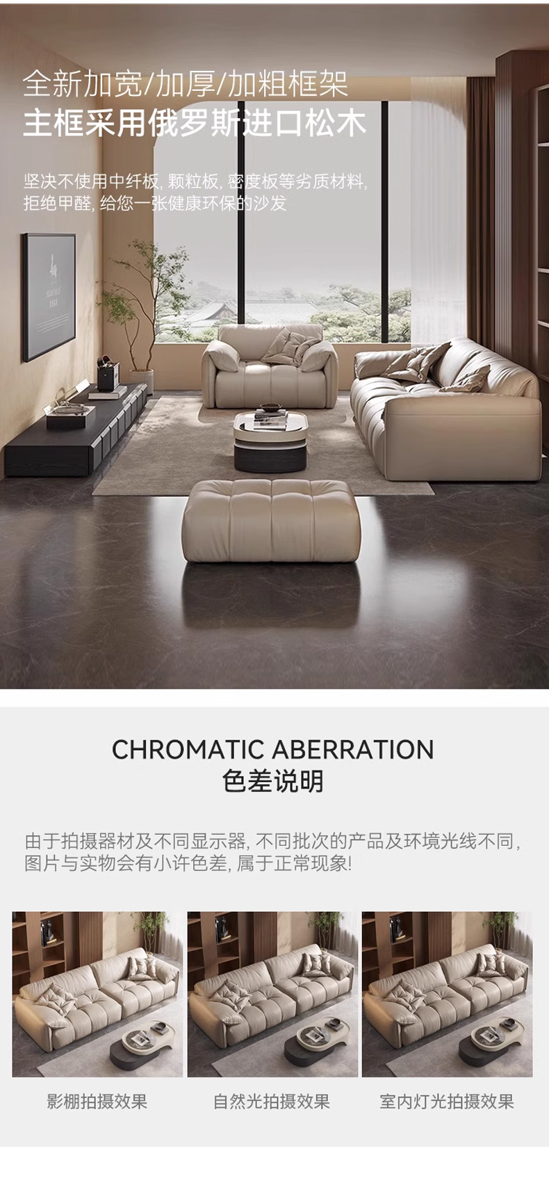 维利品尚 现代简约 接触面头层真皮+框架:落叶松木+实木脚 三人位 2.2米沙发
