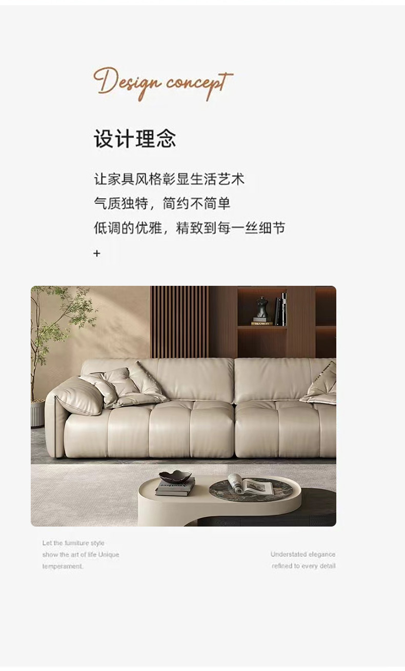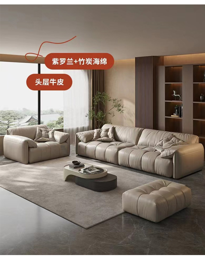 维利品尚 现代简约 接触面头层真皮+落叶松框架+实木脚 大三位 2.5米沙发