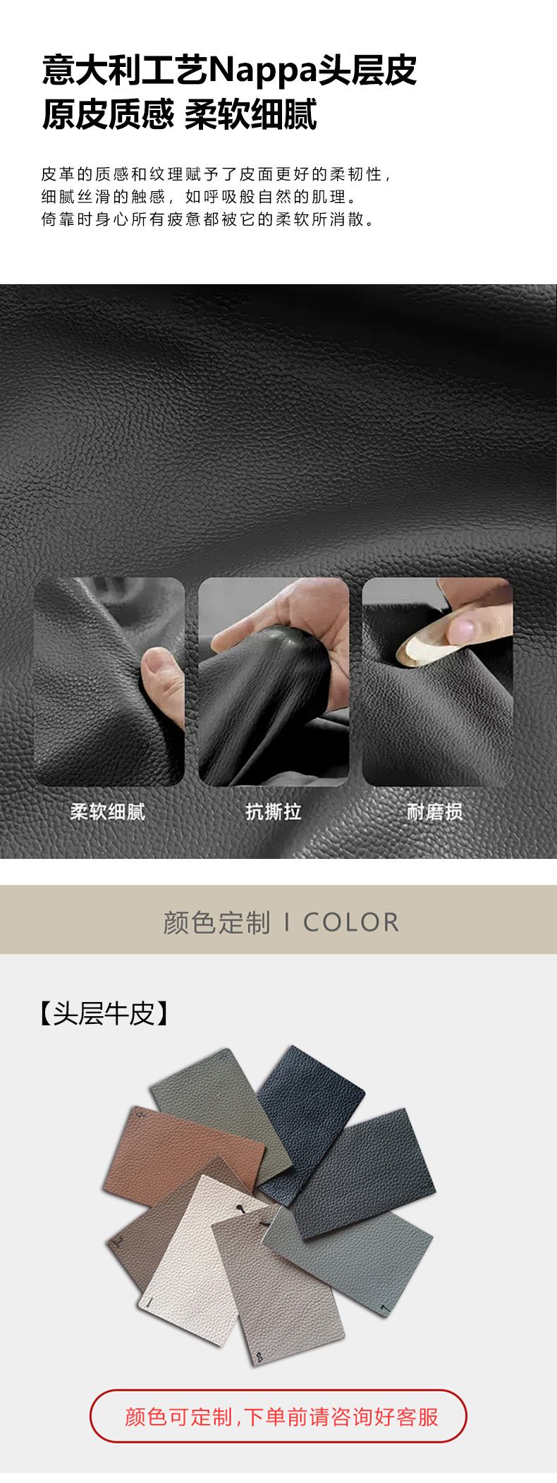 维利品尚 现代简约 接触面纳帕真皮+进口落叶松木+实木脚 三人位 2.25米沙发¥6496