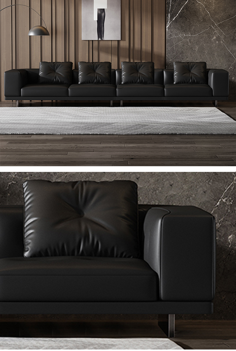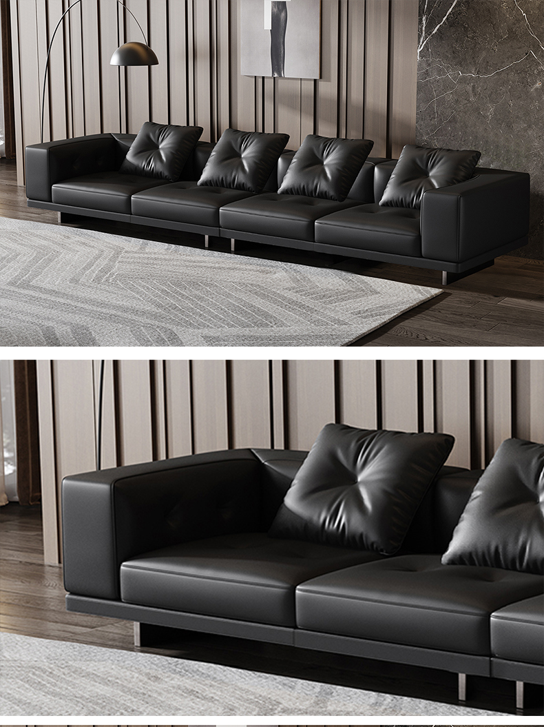 Minttu明途 极简 落叶松木+多层实木板+接触面头层真皮+仿真皮+电镀不锈钢五金脚 网红 香奈儿 四人位 2.8米沙发