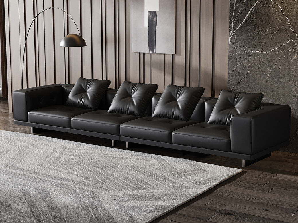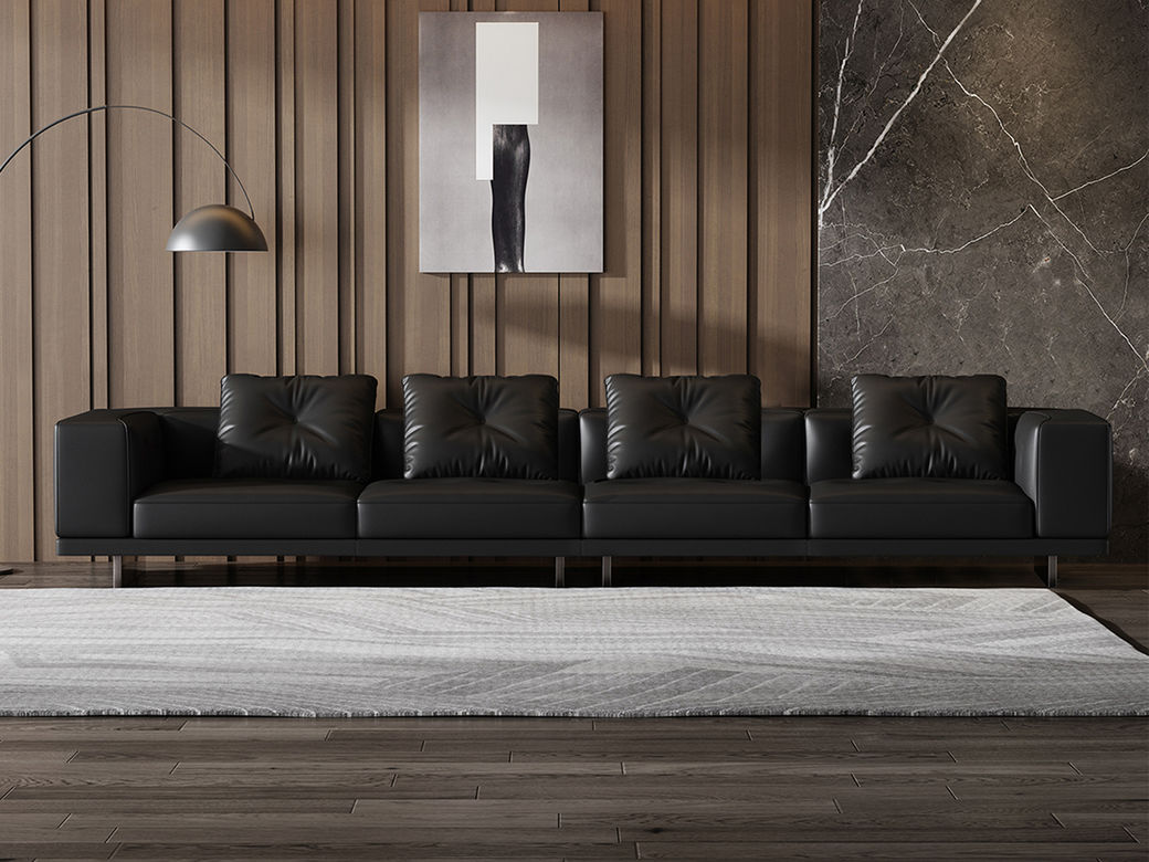 Minttu明途 极简 落叶松木+多层实木板+接触面头层真皮+仿真皮+电镀不锈钢五金脚 网红 钢琴健 大四人位 3.2米沙发¥7773
