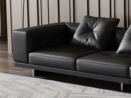 Minttu明途 极简 落叶松木+多层实木板+接触面头层真皮+仿真皮+电镀不锈钢五金脚 网红 罗杰 四人位 2.8米沙发