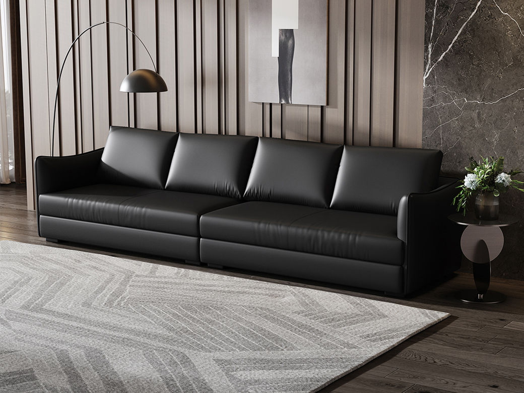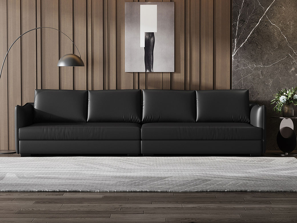 Minttu明途 极简 落叶松木+多层实木板+接触面头层真皮+仿真皮+电镀不锈钢五金脚 网红 钢琴健 大四人位 3.2米沙发¥11617