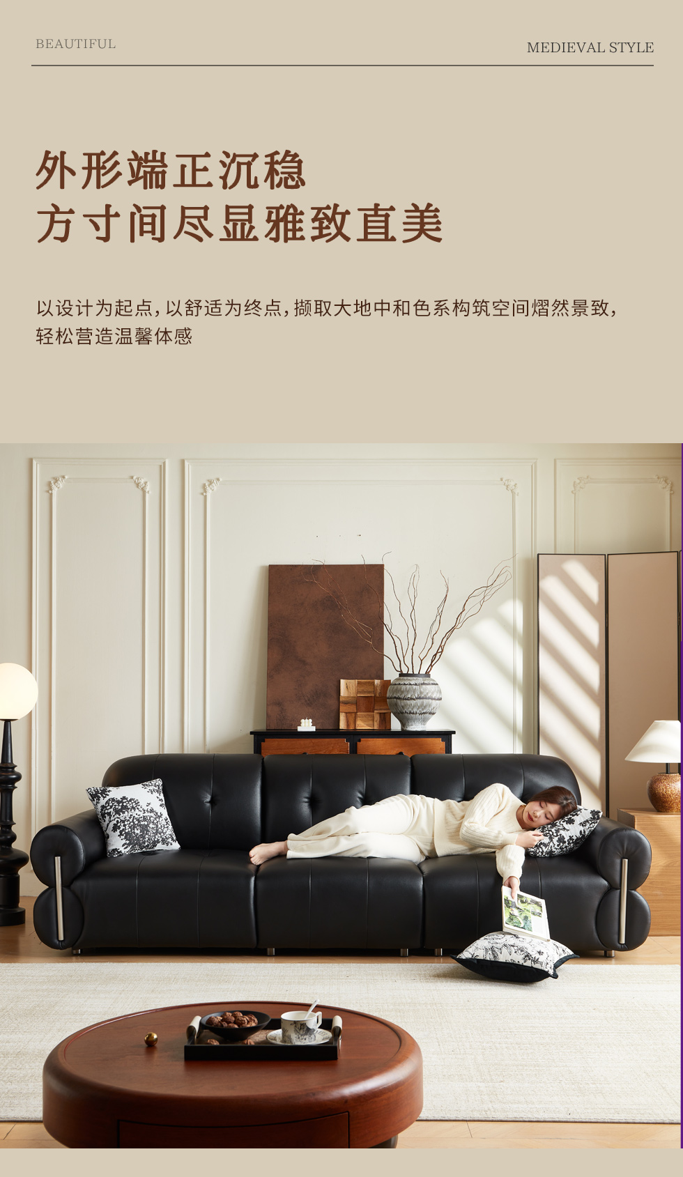 中古·尚 网红 中古风 接触面头层牛皮+框架落叶松木+多层实木夹板+实木脚 2.85米四人位 分体 沙发¥20243