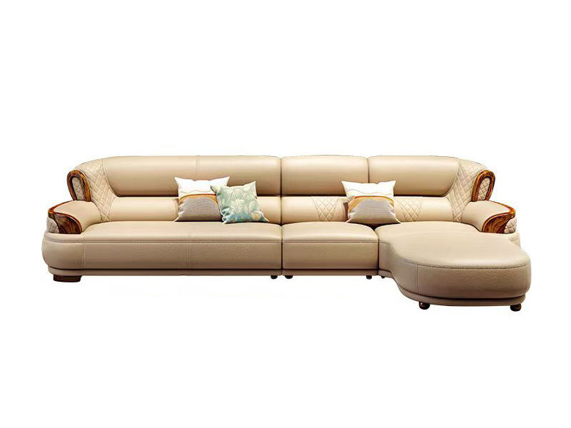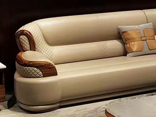 归鹊 新中式 松木内架+高回弹海绵+进口非洲喀麦隆乌金木+头层真皮 1+3+左贵妃 3.7米沙发¥22039