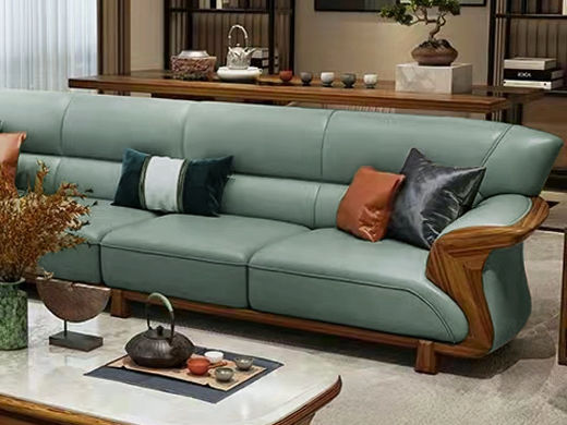 归鹊 新中式 松木内架+高回弹海绵+进口非洲喀麦隆乌金木+头层真皮 1+3+左贵妃 3.5米沙发¥13547