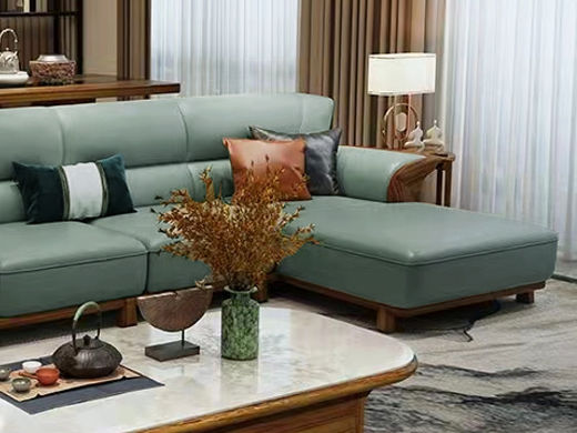 归鹊 新中式 松木内架+高回弹海绵+进口非洲喀麦隆乌金木+头层真皮 1+3+左贵妃 3.62米沙发¥14305