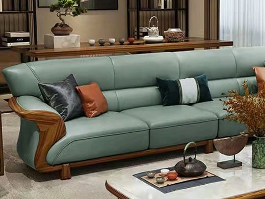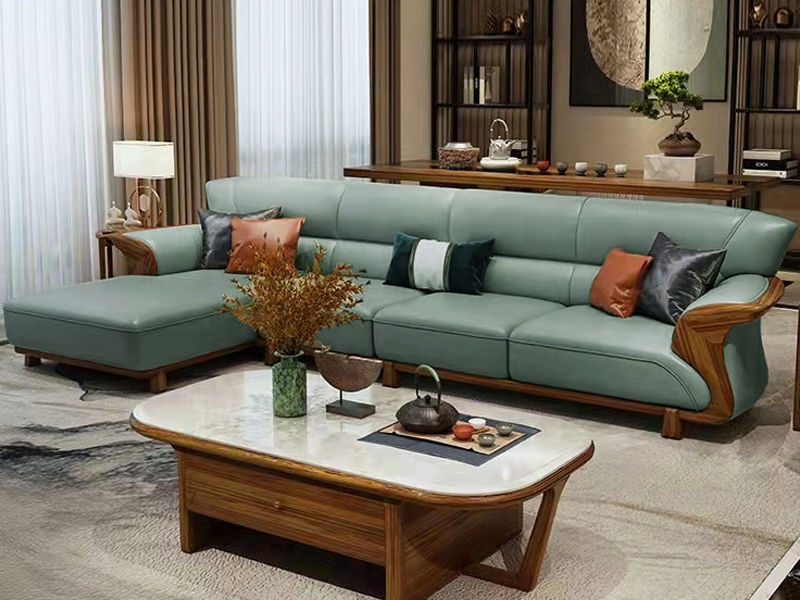 归鹊 新中式 松木内架+高回弹海绵+进口非洲喀麦隆乌金木+头层真皮 1+3+左贵妃 3.68米沙发¥21417