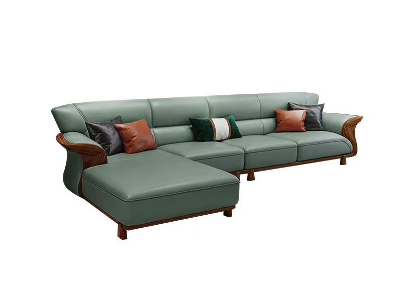 归鹊 新中式 松木内架+高回弹海绵+进口非洲喀麦隆乌金木+头层真皮 1+3+左贵妃 3.53米沙发