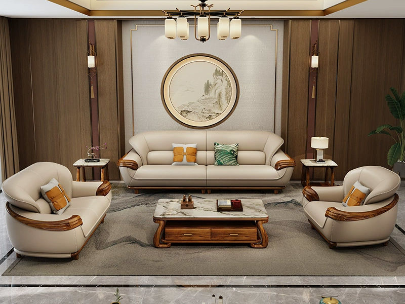归鹊 新中式 松木内架+高回弹海绵+进口非洲喀麦隆乌金木+头层真皮 单人位+双人位+四人位 组合沙发¥22487