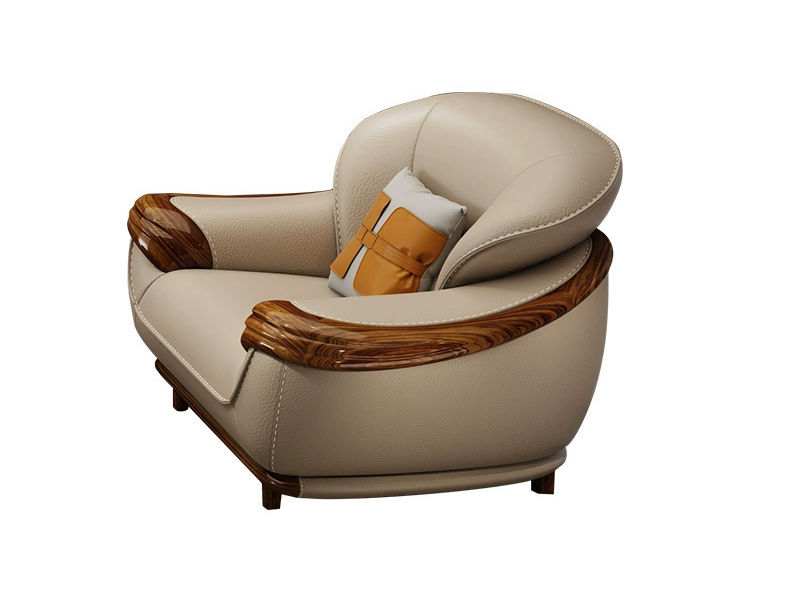 归鹊 新中式 松木内架+高回弹海绵+进口非洲喀麦隆乌金木+头层真皮 1.2米 单人位 沙发