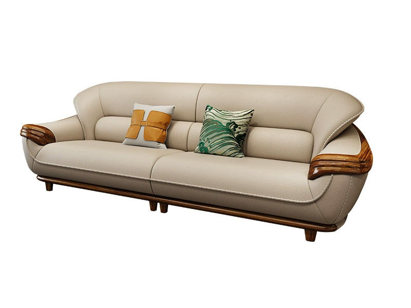 归鹊 新中式 松木内架+高回弹海绵+进口非洲喀麦隆乌金木+头层真皮 2.72米 四人位 沙发