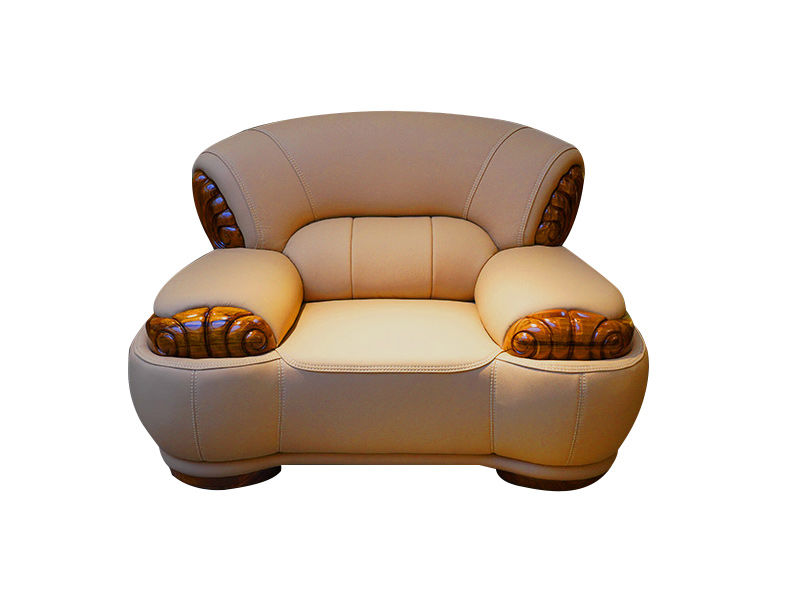 归鹊 新中式 松木内架+高回弹海绵+进口非洲喀麦隆乌金木+头层真皮 1.46米 单人位 沙发