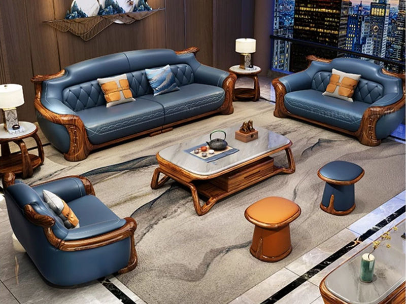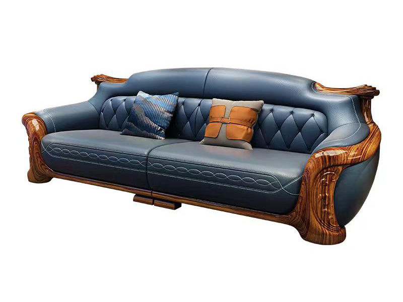 归鹊 新中式 松木内架+高回弹海绵+进口非洲喀麦隆乌金木+头层真皮 2.9米 四人位 沙发