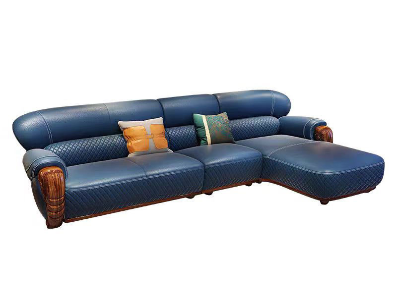 归鹊 新中式 松木内架+高回弹海绵+进口非洲喀麦隆乌金木+头层真皮 1+3+左贵妃 3.7米沙发