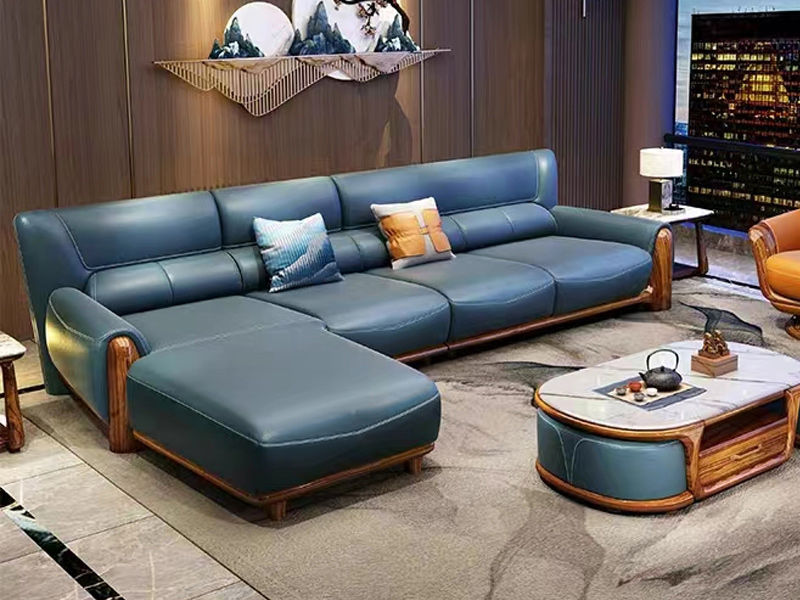 归鹊 新中式 松木内架+高回弹海绵+进口非洲喀麦隆乌金木+头层真皮 1+3+左贵妃 3.5米沙发¥14359