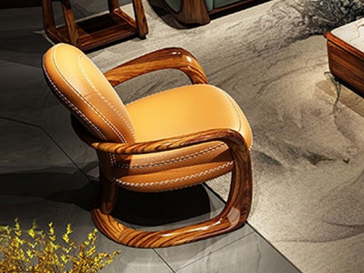 归鹊 新中式 松木内架+高回弹海绵+进口非洲喀麦隆乌金木+头层真皮 单位 0.7米沙发