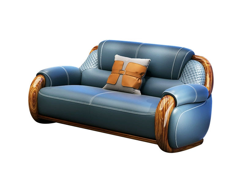 归鹊 新中式 松木内架+高回弹海绵+进口非洲喀麦隆乌金木+头层真皮 1.75米 双人位 沙发