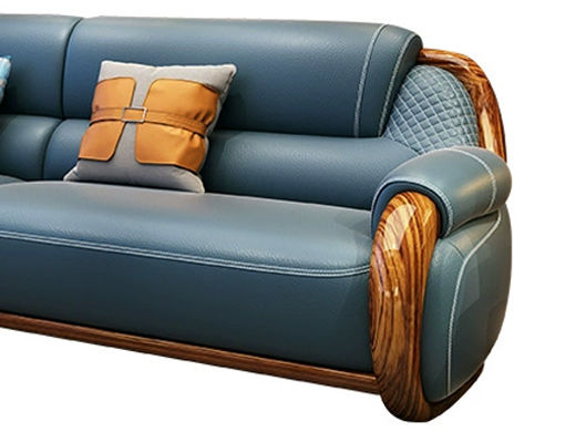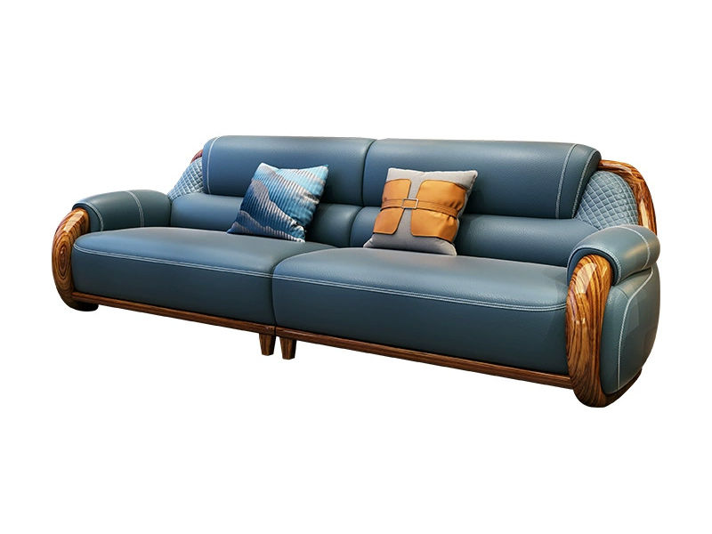 归鹊 新中式 松木内架+高回弹海绵+进口非洲喀麦隆乌金木+头层真皮 2.65米 四人位 沙发