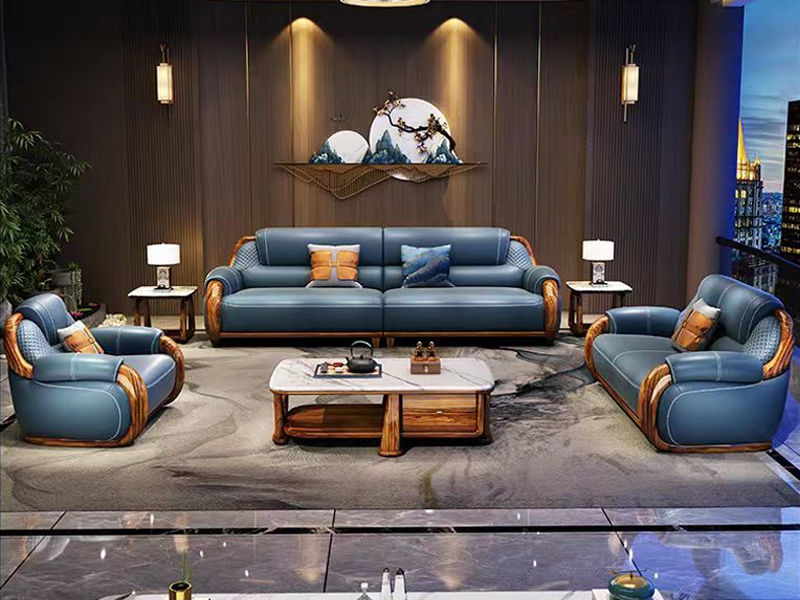 归鹊 新中式 松木内架+高回弹海绵+进口非洲喀麦隆乌金木+头层真皮 单人位+双人位+四人位 组合沙发