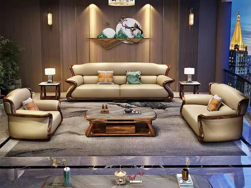 归鹊 新中式 松木内架+高回弹海绵+进口非洲喀麦隆乌金木+头层真皮 单人位+双人位+四人位 组合沙发