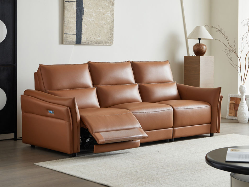 甄品家具 现代简约 接触面进口头层牛皮+进口 落叶松+高 回弹海绵+高承重碳 钢功能架+零靠墙锐迈电机+单电动功能 碳素钢脚 3.1米 三人位 单电动功能沙发